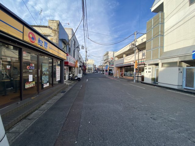 3.左側の松屋とセブンイレブンの間の道を、50メートルほど進みます。